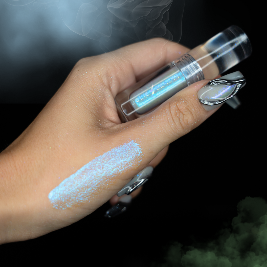 Vores multichrome flydende øjenskygge er den perfekte måde at tilføje en glitrende POP til dit look. Denne smukke farveskiftende væske er perfekt til at klippe folder eller klappe på toppen af dine øjenskygger for en multidimensionel finish.